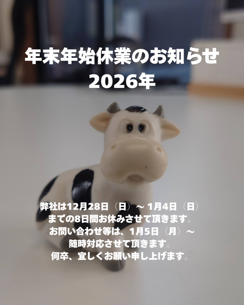 さて、誠に勝手ながら、弊社では下記の期間を年末年始休業とさせていただきます。