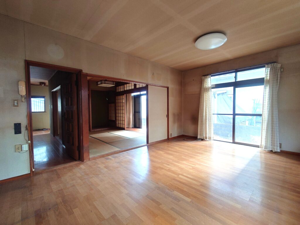 純和風の家で、駐車スペースは3台並列が可能です。目の前には公園があって住環境が優れた街並みです。3LDKの間取りで、リノベーションをして住むのにもおすすめです。